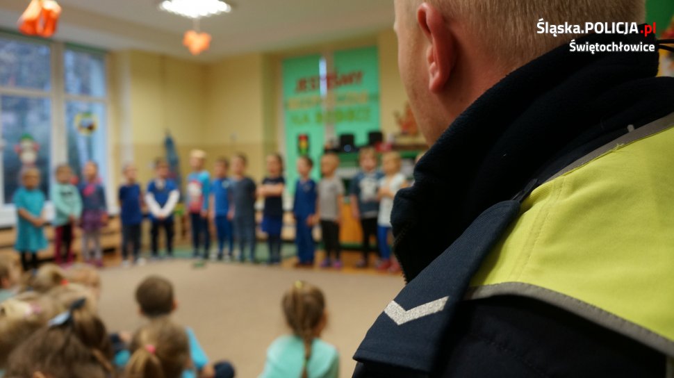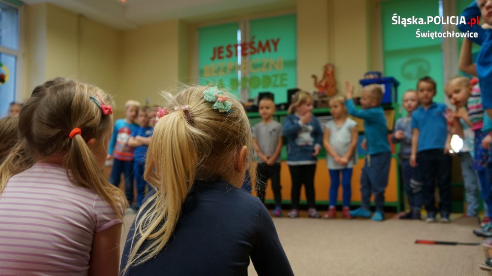 Dlaczego podnosimy rękę do góry przechodząc przez przejście dla pieszych oraz po co nosimy odblaski? Na te i inne pytania odpowiadali świętochłowiccy policjanci podczas spotkania z najmłodszymi mieszkańcami miasta z przedszkola nr 2. Poza prelekcją, ku ucieszy dzieci, mundurowi zaprezentowali także część policyjnego wyposażenia.