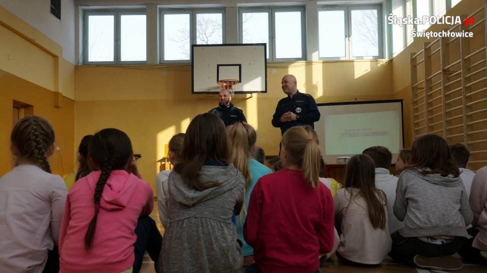Ferie zimowe już za kilka dni, dlatego zespół policyjnych profilaktyków wraz z dzielnicowymi zaplanował serię spotkań dla uczniów wszystkich klas podstawowych w naszym mieście. Tematyką przewodnią spotkań jest przede wszystkim bezpieczeństwo podczas zimowego szaleństwa. Ci którzy udają się na narty lub deskę snowboardową otrzymali kilka porad dotyczących zachowania na stoku oraz co zrobić w sytuacji kryzysowej np. podczas utknięcia w zaspie. Dla tych którzy w mieście pozostają przygotowano krótki poradnik o tzw. dzikich lodowiskach. W ramach akcji „Bezpieczna woda”, policjanci przypomnieli, że wchodzenie na lód powstały na pokrywie akwenów, wiąże się z ogromnym niebezpieczeństwem. Musimy pamiętać, że szybkie i częste zmiany temperatury wpływają na grubość i wytrzymałość pokrywy lodowej, co może skończyć się dla nas wpadnięciem do wody. Niska temperatura zewnętrzna plus woda w okolicach 0 stopni Celsjusza, a także czynniki takie jak stan dna danego zbiornika wodnego, to bardzo duże ryzyko dla naszego zdrowia i życia. Nieodłącznym elementem rozmowy na temat podobnych zagrożeń jest przygotowanie uczniów w kwestii praktycznej. O tym, że w żaden sposób nie wolno wchodzić na lód, będąc świadkiem wpadnięcia osoby do wody apelowali policjanci. Na koniec spotkania policjanci zachęcali do uczestnictwa w konkursie fotograficzno-plastycznym w ramach akcji ''Kręci mnie bezpieczeństwo na stoku".