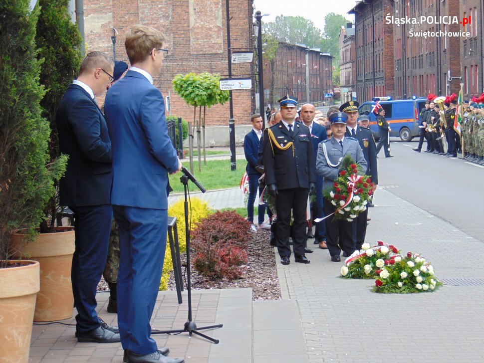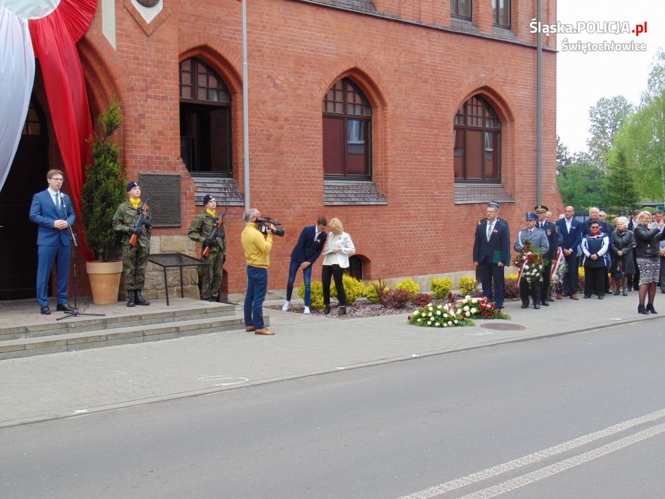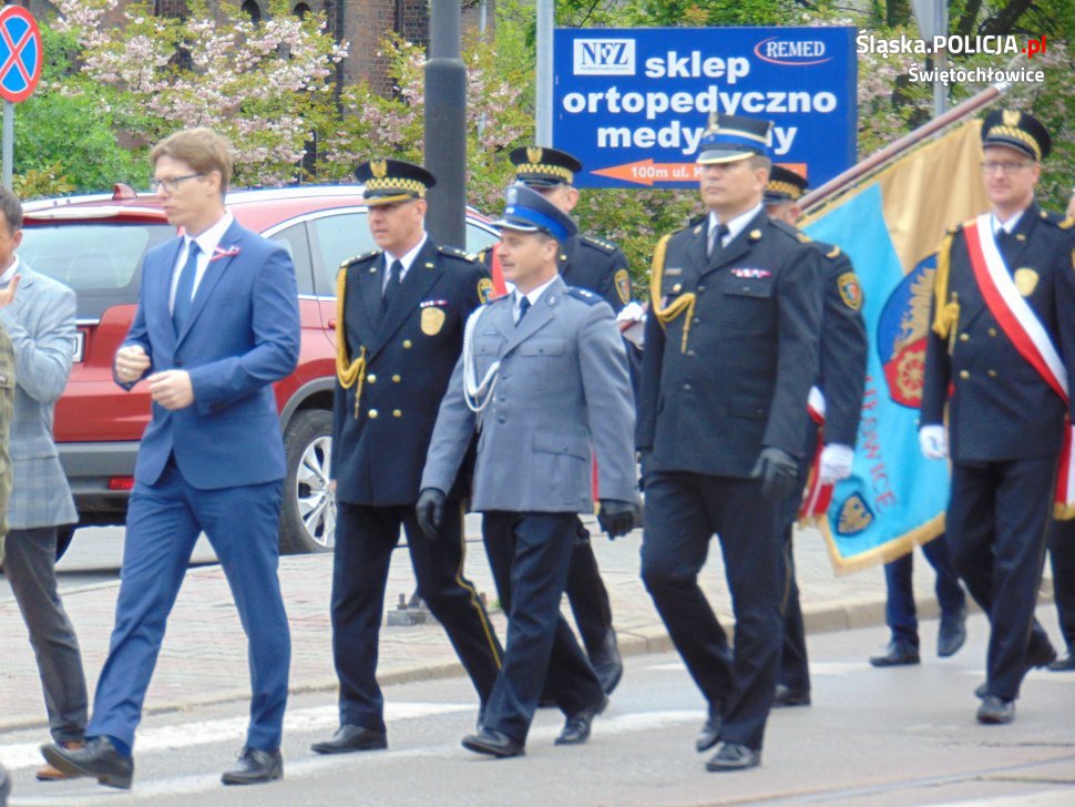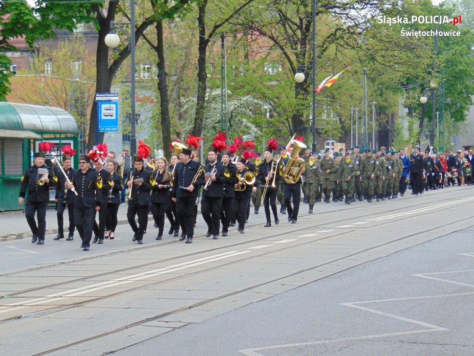 Uroczyste obchody rocznicy uchwalenia Konstytucji 3-go Maja rozpoczęła Msza Święta. Następnie z parafii św. Piotra i Pawła wszyscy uczestnicy przeszli pod Muzeum Powstań Śląskich, gdzie złożyli wieńce i zapalili znicze. W obchodach wzięli udział między innymi przedstawiciele władz samorządowych, związków kombatanckich oraz placówek oświatowych. Obecne były również służby mundurowe oraz uczniowie i nauczyciele szkoły o profilu mundurowym. Świętochłowicką Policję reprezentował Komendant Miejski Policji w Świętochłowicach podkom. Bogdan Kołodziej.