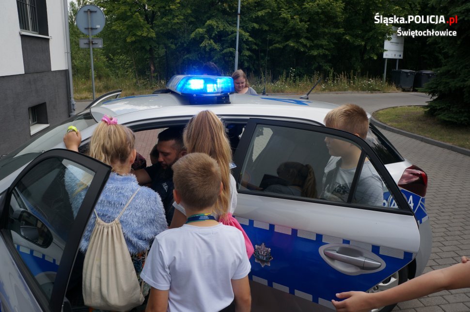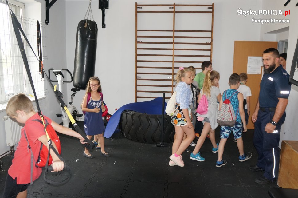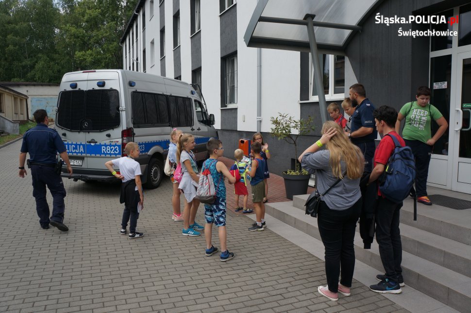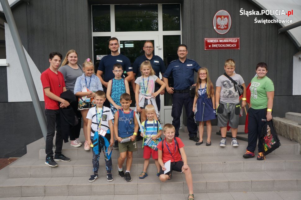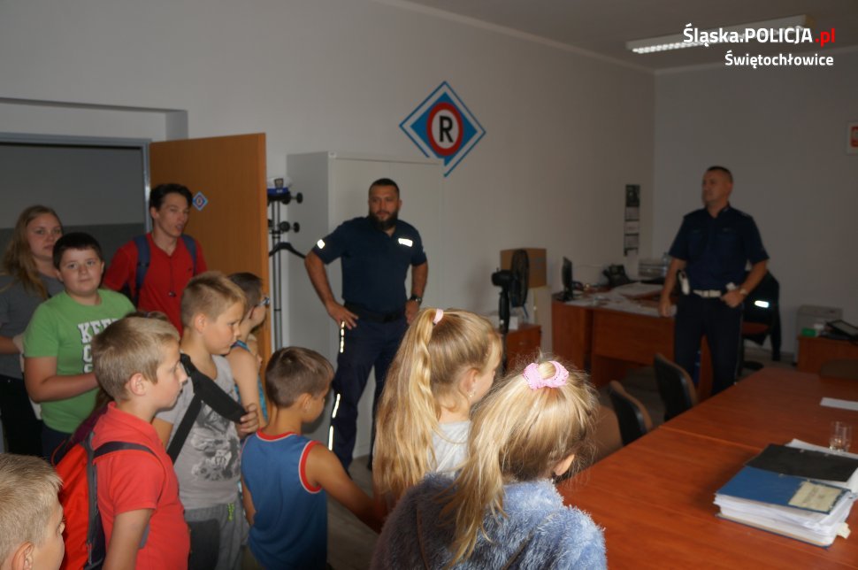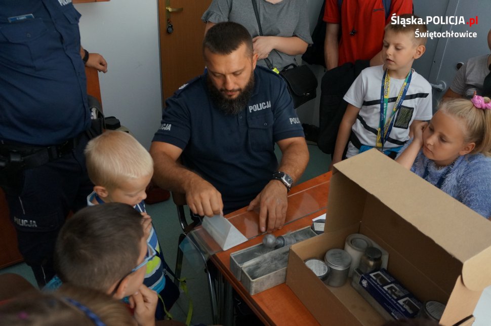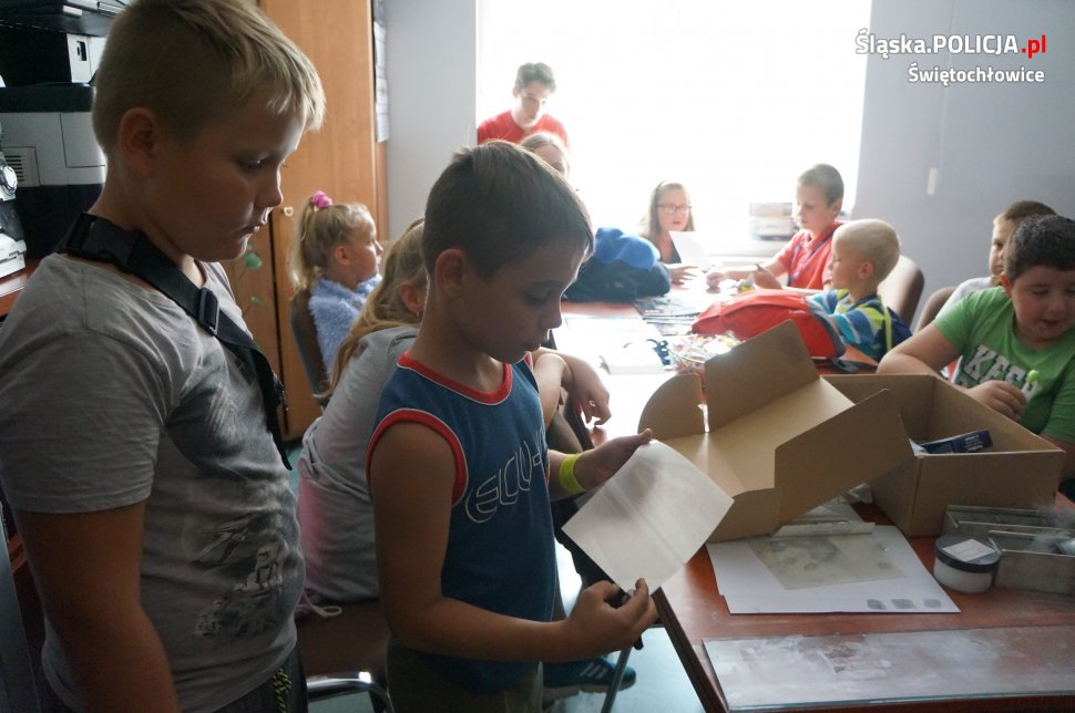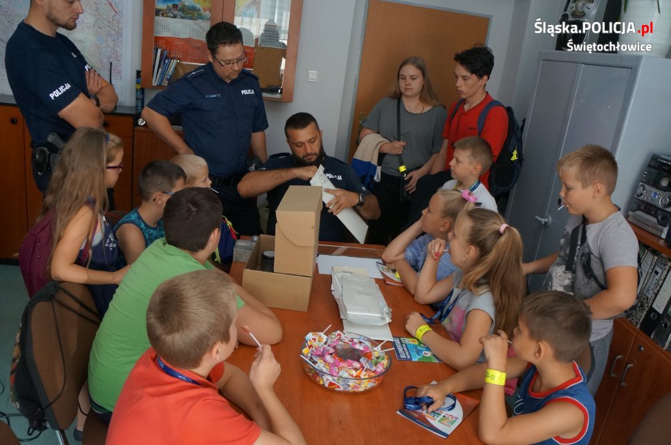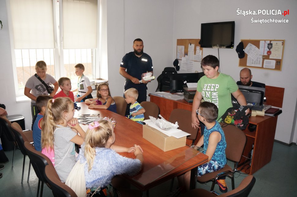 W dniu dzisiejszym świętochłowicką komendę odwiedziły dzieci ze Świetlicy Środowiskowej „PROMYK”. Dzieci zostały przywitane przez dzielnicowych oraz świętochłowickiego profilaktyka sierż.szt. Marcina Michalika. Odwiedziny zaczęły się od wycieczki po całej komendzie, dzieciaki mogły zajrzeć do policyjnego aresztu, pokoi gdzie policjanci prowadzą przesłuchania oraz policyjnej sali ćwiczeń. Na koniec w sali odpraw dzielnicowi przypomnieli uczestnikom wycieczki jak dbać o własne bezpieczeństwo podczas trwających wakacji oraz jak prawidłowo zachowywać się nad wodą. Spotkanie zakończyło się na specjalnym stanowisku Technika Kryminalistyki, gdzie każdy mógł pobawić się w policjanta i zabezpieczyć odciski palców odbitych wcześniej na szybie.