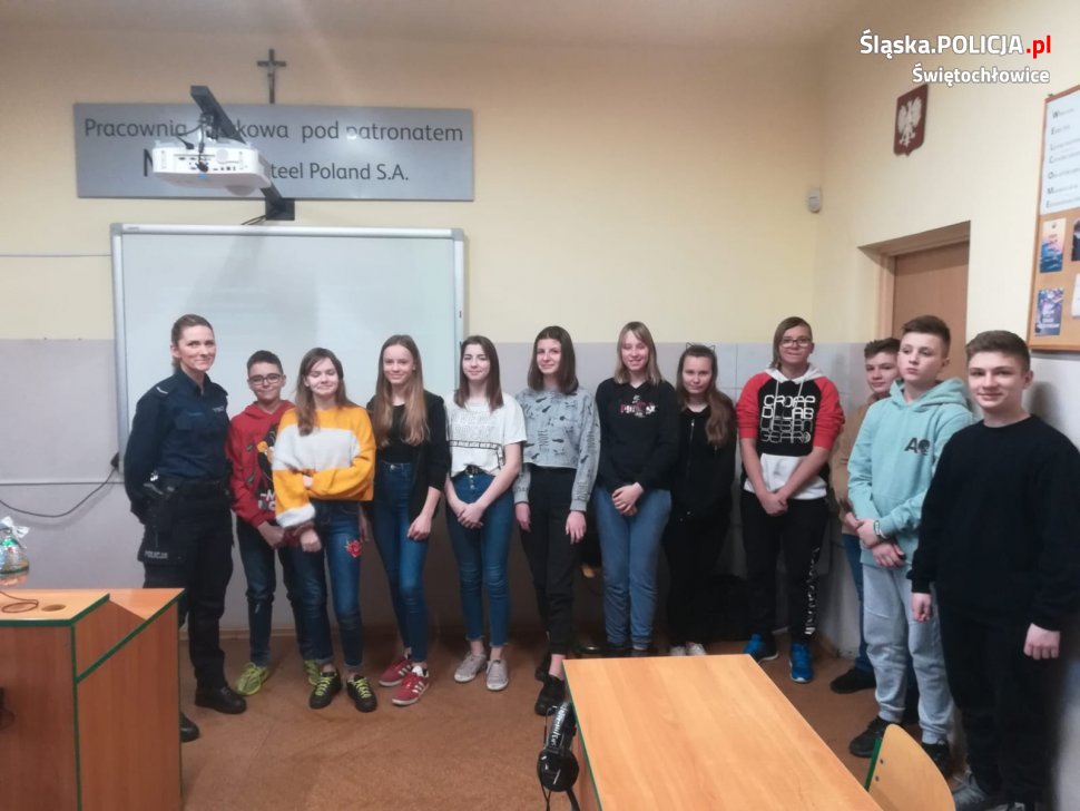 W poniedziałek mundurowa ze świętochłowickiej policji spotkała się z młodzieżą. Policjantka odwiedziła miejscową Szkołę Podstawową nr 3. Podczas prelekcji przekazała młodzieży informacje dotyczące odpowiedzialności karnej nieletnich w świetle obowiązujących przepisów prawa. Omówiła z uczestnikami wykładu kwestię przejawów demoralizacji. Szóstoklasiści z dużym zaangażowaniem uczestniczyli w spotkaniu, odpowiadali chętnie na pytania i dzielili się swoimi spostrzeżeniami.