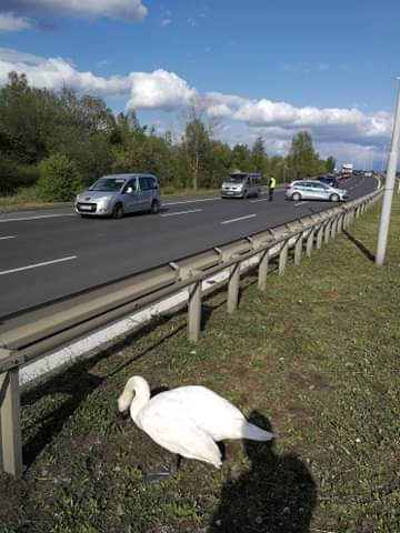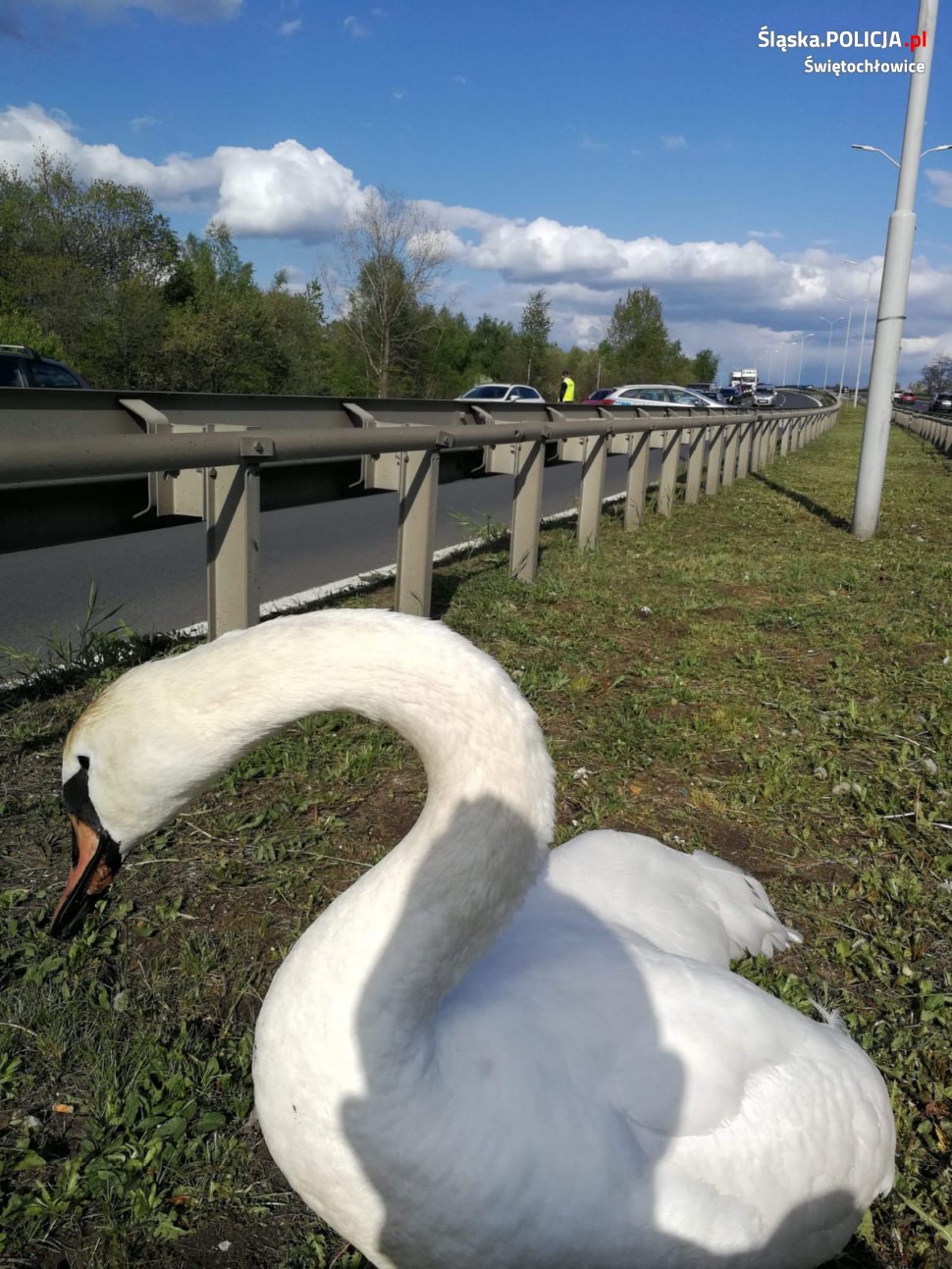 Świętochłowiccy policjanci pomogli łabędziowi, który utknął na pasie zieleni. Zwierzę nie potrafiło samodzielnie opuścić drogi, co stanowiło zagrożenie dla niego i kierujących. Policjanci na chwilę zablokowali ruch w obu kierunkach DTŚ i przenieśli ptaka w bezpieczne miejsce. Dzięki trosce mundurowych, łabędź jest już bezpieczny.