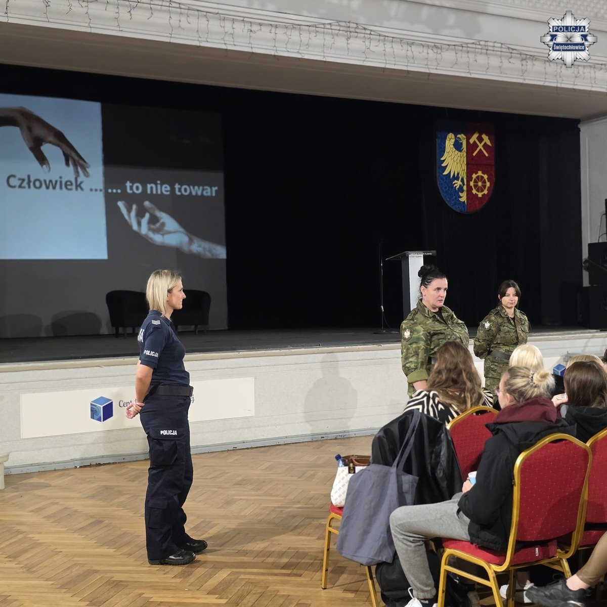 W ramach trzeciego dnia V Miejskiego Tygodnia Przeciwko Przemocy młodzież ze świętochłowickich szkół ponadpodstawowych wzięła udział w warsztatach poświęconych problematyce handlu ludźmi. Spotkanie poprowadziły funkcjonariuszki Straży Granicznej z Rudy Śląskiej, które przybliżyły uczniom mechanizmy działania sprawców oraz sposoby unikania zagrożeń. Podkreślono również istotną rolę Policji w przeciwdziałaniu temu niebezpiecznemu procederowi.