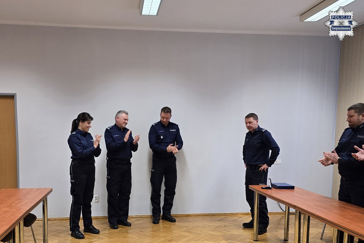 Piątek był ostatnim dniem służby w Policji Naczelnika Wydziału Prewencji KMP w Świętochłowicach podinsp. Krzysztofa Kulika. Pierwszy Zastępca Komendanta Wojewódzkiego Policji w Katowicach insp. Radosław Kacprzak podziękował przyszłemu emerytowi za wieloletnią i pełną poświęceń służbę, a Szef świętochłowickich policjantów – insp. Jacek Nowak, oraz pierwszy zastępca – mł. insp. Monika Francikowska podziękowali w imieniu swoim i całej kadry, za wspólną służbę, podczas której zawsze mogli na niego liczyć i który znakomicie prowadził największy wydział w tej jednostce. Następnie Komendant Wojewódzki Policji w Katowicach wręczył inspektorowi Kulikowi odznakę honorową "Za zasługi dla Komendy Wojewódzkiej Policji w Katowicach”.