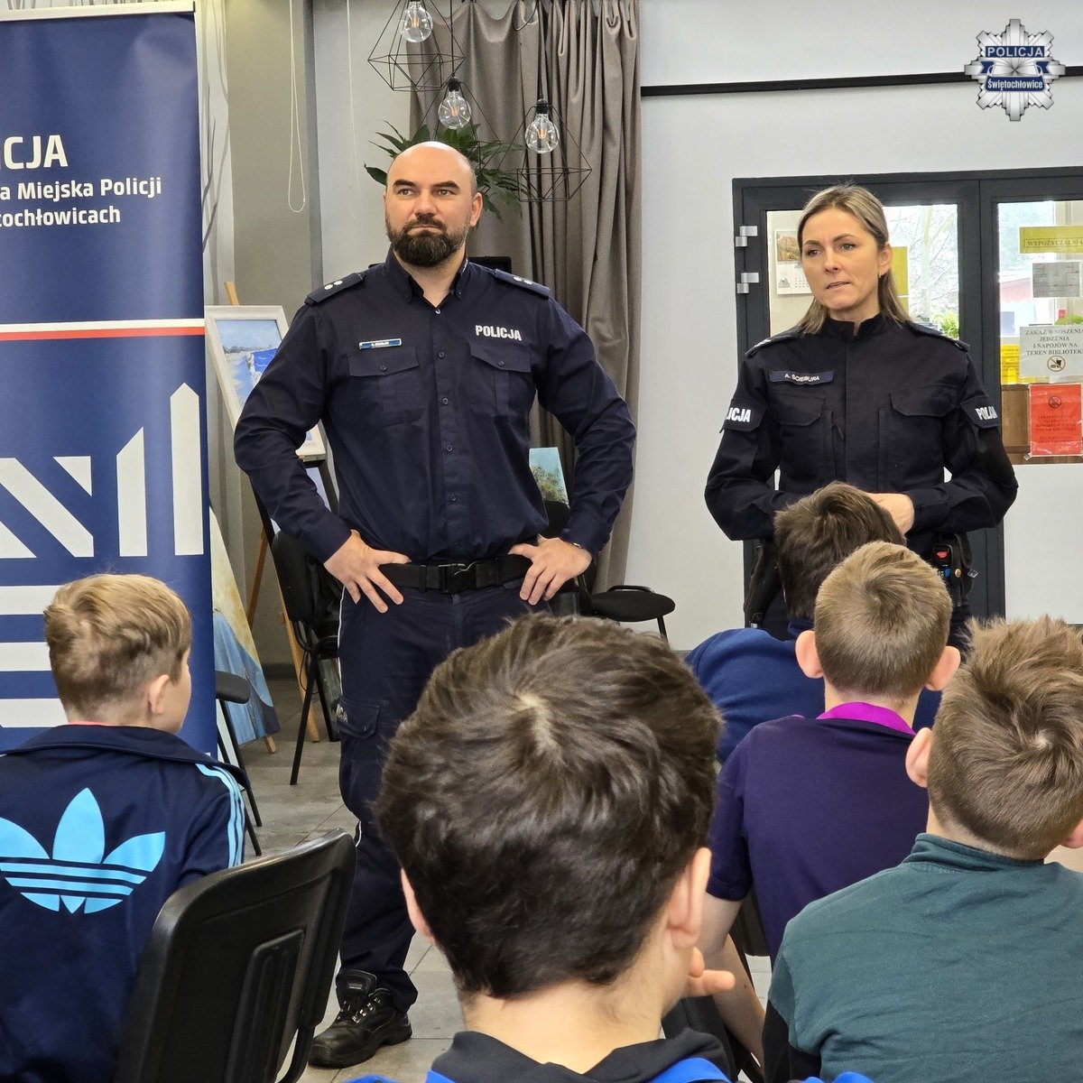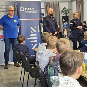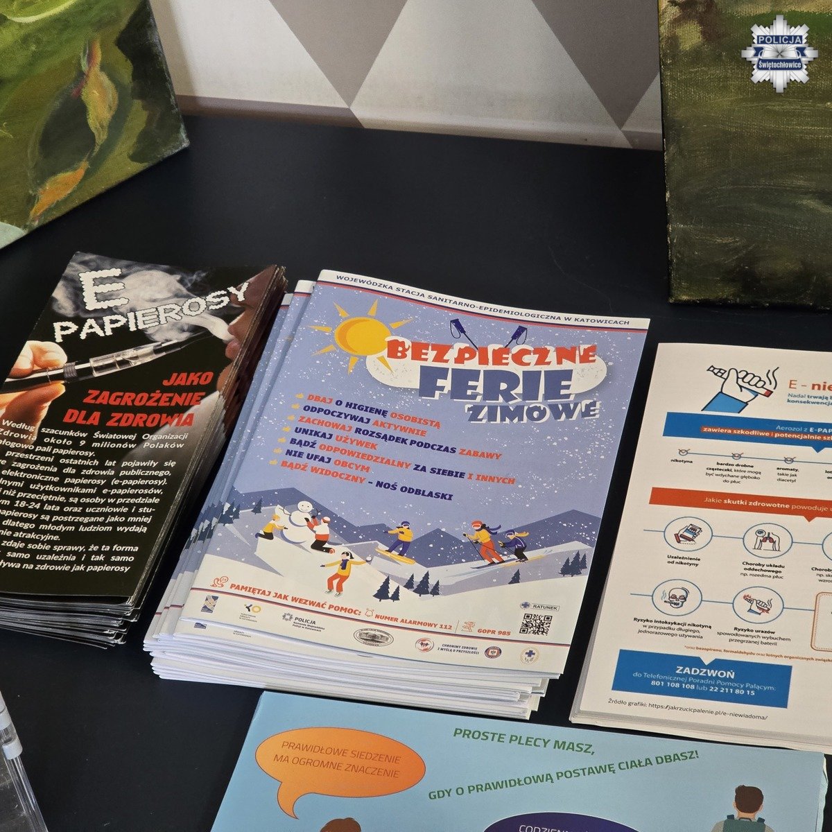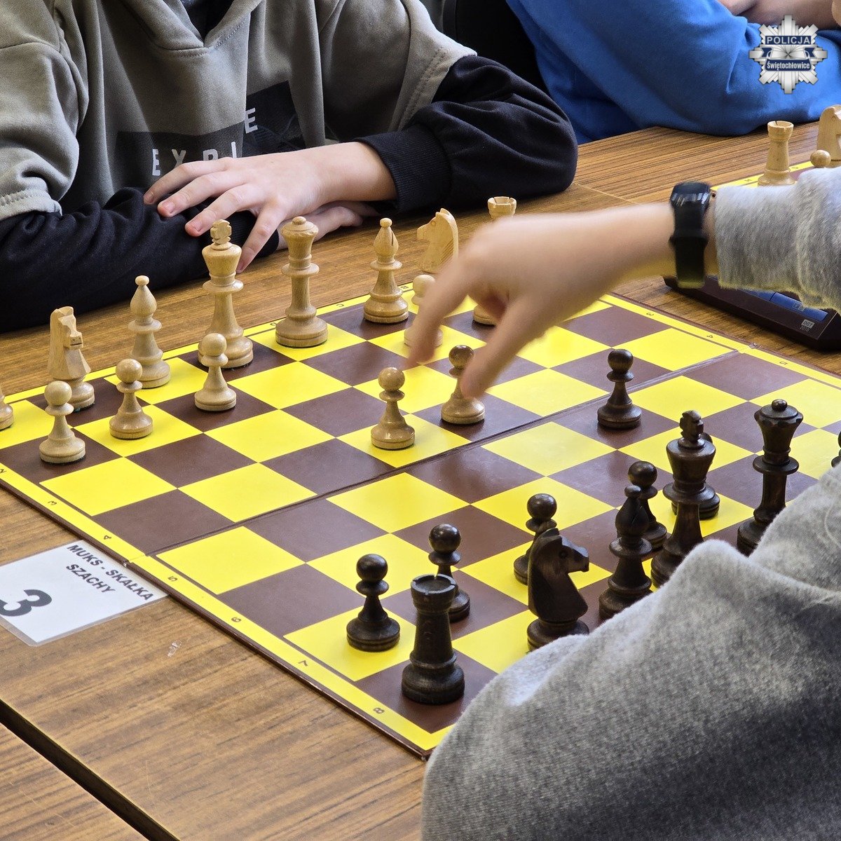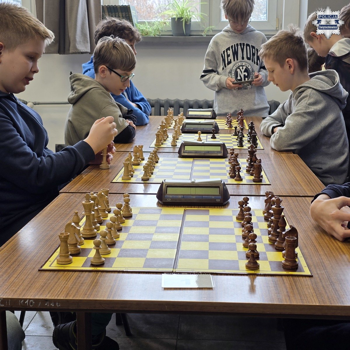 W Filii nr 1 Miejskiej Biblioteki Publicznej w Świętochłowicach odbyły się rozgrywki szachowe w ramach akcji "Bezpieczne ferie 2026". W szranki turniejowe stanęła liczna grupa młodzieży. W przerwie, podczas podsumowania rozgrywek policjanci w raz z przedstawicielami Powiatowej Stacji Sanitarno-Epidemiologicznej w Chorzowie przeprowadzili prelekcję na temat bezpieczeństwa w trakcie trwających ferii zimowych.
