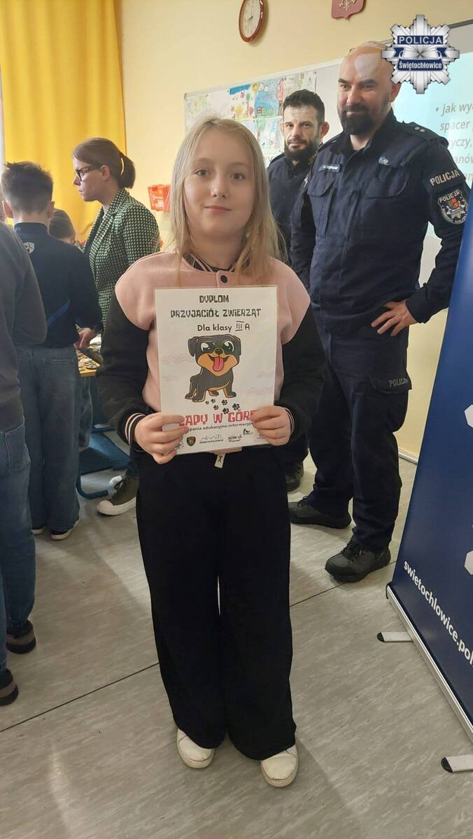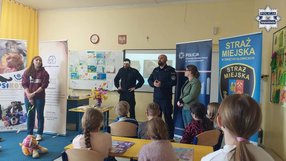 Policjanci spotkali się z uczniami Szkoły Podstawowej numer 2 w ramach kampanii „Łapy w górę”, promującej bezpieczne i odpowiedzialne zachowania wobec zwierząt. Celem działań jest zwiększenie świadomości dzieci i młodzieży oraz zapobieganie niebezpiecznym sytuacjom na linii człowiek–zwierzę. Przedsięwzięcie zrealizowano wspólnie ze Schroniskiem w Chorzowie, Urzędem Miasta Świętochłowice, Strażą Miejską oraz ośrodkiem „Przystań”.
