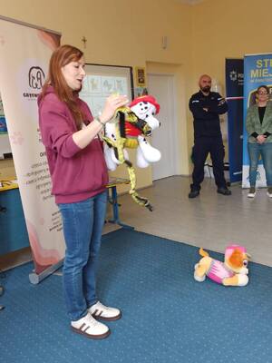 Zajęcia miały charakter interaktywny – dzieci chętnie dzieliły się swoimi doświadczeniami i zadawały pytania, co pozwoliło utrwalić przekazywane treści i zwiększyć ich praktyczne zastosowanie w codziennym życiu.