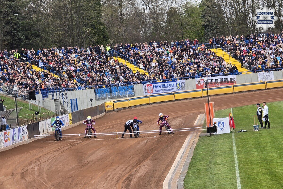Świętochłowiccy policjanci zabezpieczali mecz żużlowy pomiędzy Skałką Świętochłowice a Lokomotivem Daugavpils. Dzięki odpowiedniemu przygotowaniu służb oraz właściwej postawie kibiców wydarzenie przebiegło spokojnie i bez incydentów. Mundurowi czuwali nad bezpieczeństwem uczestników zarówno na terenie stadionu, jak i w jego okolicy.